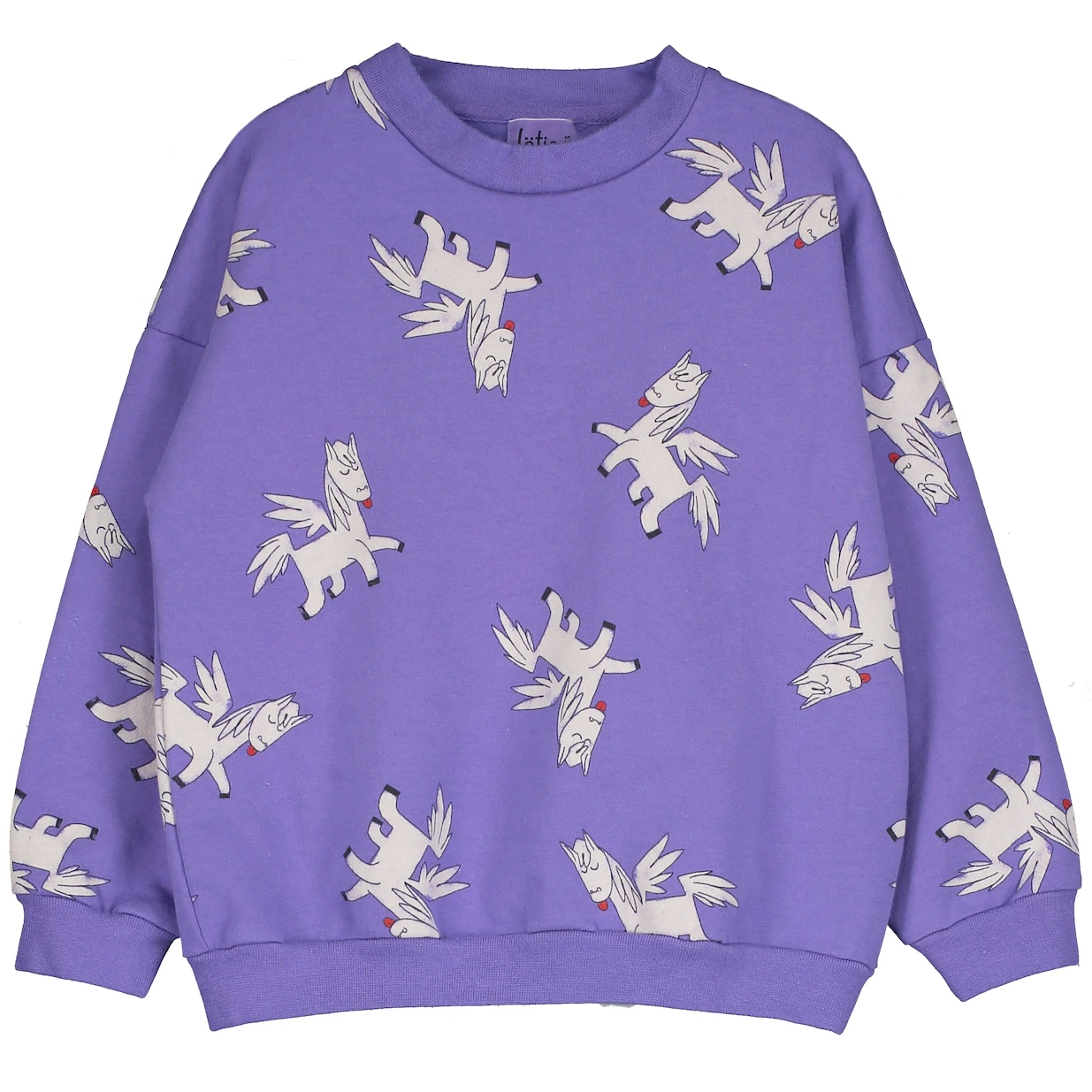 Discover more about the Sustainable lotiekids pegasus violet sweatshirt organic cotton made in Barcelona