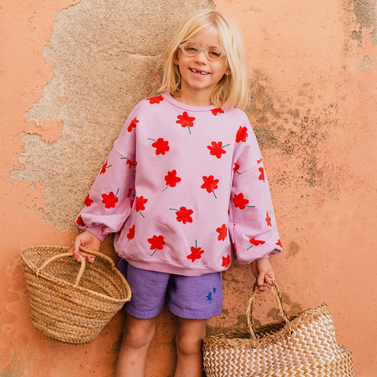 Discover more about the Sustainable lotiekids poppies verbena sweatshirt organic cotton made in Barcelona